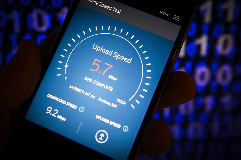 test rychlosti internetu webové stránky je vidět na mobilním zařízení v této ilustrační foto na 11. června … 2018 ve Varšavě, Polsko., S Americkou Federální Komunikační Komise, kterým se zrušuje zákon, který chrání spotřebitele od společnosti samotné určení rychlosti internetu, tzv. net neutrality pravidla vznikají obavy, že internet bude stále více a více resembel kabelové TV, kde několik velkých firem dominují vysílání., (Foto Jaap Arriens/NurPhoto prostřednictvím Getty Images)