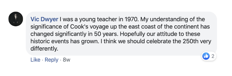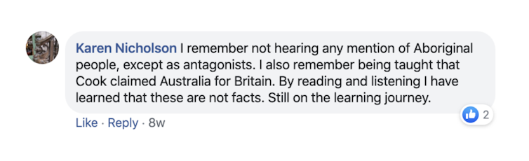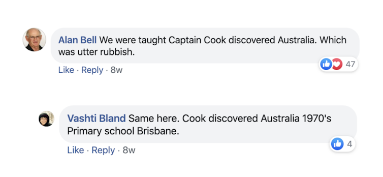 o Capitão James Cook chegou ao Pacífico há 250 anos, provocando a colonização britânica da região. Pedimos aos investigadores para reflectirem sobre o que aconteceu e como nos molda hoje. Você pode ver outras histórias na série aqui, e uma interativa aqui.,aproximando-se do 250º aniversário da primeira viagem de Cook ao Pacífico, a conversa perguntou aos leitores o que eles se lembravam de aprender na escola sobre sua chegada à Austrália.